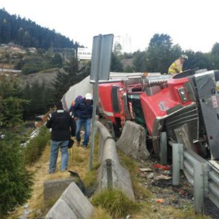 De acuerdo con las primeras versiones el conductor de la pesada unidad que cayó desde el puente vehicular murió con el impacto.