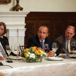 Calderón Hinojosa estuvo acompañado por el jefe de la Oficina de la Presidencia, Gerardo Ruiz, y los secretarios de Relaciones Exteriores, Patricia Espinosa; de Economía, Bruno Ferrari, así como por el embajador de México en Estados Unidos, Arturo Sarukhan.
