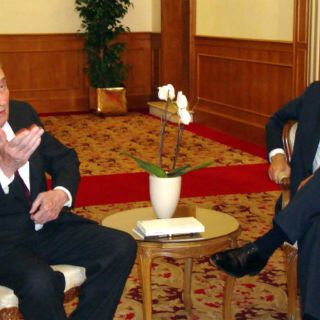 Felipe Calderón también se reunió con el politólogo italiano Giovanni Sartori. Conversaron sobre los avances y desafíos que enfrentan los regímenes democráticos, así como la representación y participación ciudadanas en la toma de decisiones.