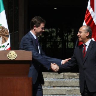 Por su parte el viceprimer ministro del Reino Unido, Nick Clegg, hizo un reconocimiento al Gobierno de México y al Presidente Felipe Calderón por el valor con el que se ha enfrentado al narcotráfico y al crimen organizado, luego de un encuentro que sostuvo con el mandatario en el que también se dijo admirado por el manejo de la economía nacional, por lo que reiteró la decisión de su gobierno de duplicar el intercambio comercial y reforzar en general la relación bilateral.