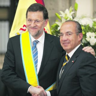 El Presidente Felipe Calderón y el presidente del Gobierno español, Mariano Rajoy, se reunieron en el Patio de Honor del Palacio Nacional, donde compartieron halagos y destacaron la buena salud de las relaciones bilaterales.