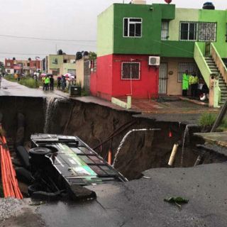 Además del vehículo, una casa se aprecia en riesgo de venirse a pique por el socavón que se formó.