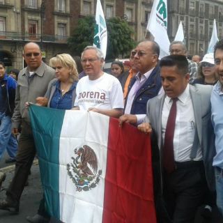 En la manifestación están presentes el presidente nacional de Morena, Martí Batres, así como de cuatro ex candidatos de otros partidos a la jefatura delegacional, quienes reconocen el triunfo de Ramón Jiménez y piden que se limpie la elección.