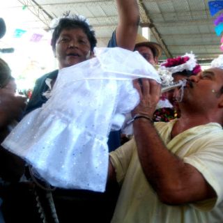 Espinosa señaló que los "mareños", como llaman en Huamelula a los huaves, le buscan al lagarto una madrina, que se encarga de confeccionarle su ropa típica de la región, e incluso lo llevan a la Iglesia de San Pedro Apóstol, donde los sabios del lugar bautizan al animal con el nombre de la esposa del alcalde en turno.