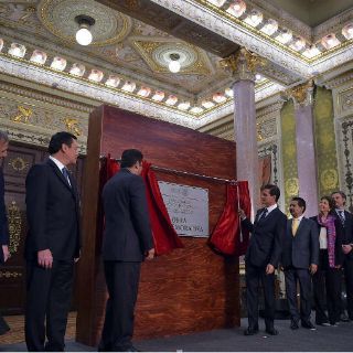Peña Nieto recorrió, sin la presencia de los periodistas, la Exposición, ubicada en el Vestíbulo del Recinto Parlamentario del Palacio Nacional, y develó la placa de la obra conmemorativa del Centenario de la Constitución Política.
