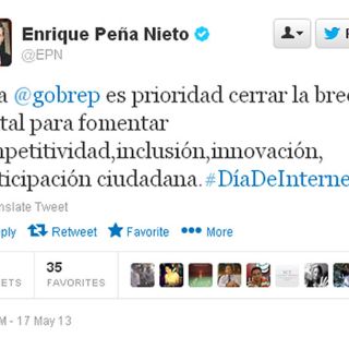 En un mensaje anterior en la misma red social, indicó: "para @gobrep es prioridad cerrar la brecha digital para fomentar competitividad, inclusión, innovación, participación ciudadana.#DíaDeInternet@EPN".