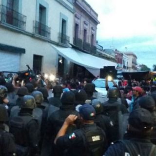 La Sección 22 del magisterio tenía previsto realizar su "grito popular" en algún espacio del centro de la ciudad, sin embargo esto no ha sido permitido y son enfrentados por los policías.