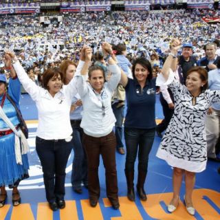Arropada por los tres aspirantes a la candidatura presidencial del PAN y con un mensaje centrado en la solidaridad como camino para ganar las elecciones, Luisa María Calderón encabezó su cierre de campaña en un estadio lleno aunque con poca seguridad y amenizado por actrices y conductores de la televisión como Maribel Guardia y Carlos Benavides.