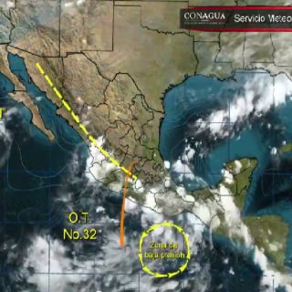Por otra parte, la Onda Tropical Número 32 se extiende sobre Guerrero y avanzará hacia el oeste, lo que favorecerá potencial de lluvias muy fuertes con actividad eléctrica en los estados de México, Guerrero, Morelos y Puebla, y fuertes en Hidalgo, Tlaxcala y el Distrito Federal.