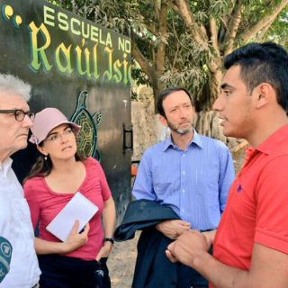 Al término de la reunión, los funcionarios realizaron un recorrido por la escuela de magisterio durante el cual los alumnos les contaron algunas de las dificultades que enfrentan por la estigmatización y los escasos recursos con los que cuentan.