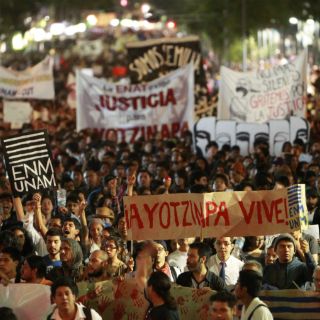CIUDAD DE MÉXICO (05/NOV/2014).- Al entonar el Himno Nacional, los cientos de manifestantes reunidos en la plaza del Zócalo dieron por terminada la tercera marcha con la cual se demanda la aparición con vida de los 43 estudiantes normalistas de