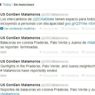 "Balaceras en colonia Praderas, Palo Verde y Juárez de Matamoros se reportan terminadas", alertó el consulado norteamericano en su cuenta de Twitter ( @USCGMatamoros).
