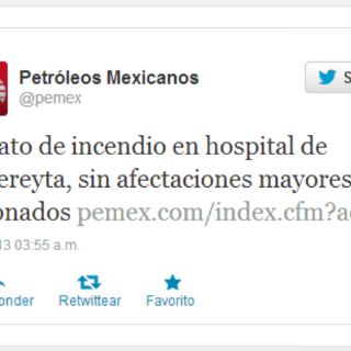 En su cuenta de Twitter, la paraestatal publicó: "Desalojamos el área de terapia intensiva del hospital de Cadereyta en Nuevo León por un conato de incendio. No hubo lesionados".
