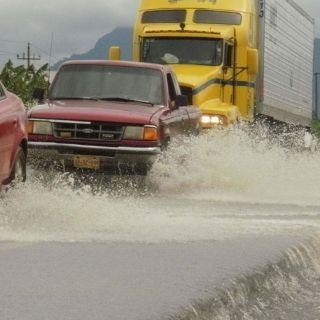En la carretera federal Villahermosa-Teapa, la corriente del Río La Sierra mantenía un tramo de casi un kilómetro anegado y el tránsito vehicular se realizaba por un sólo un carril.