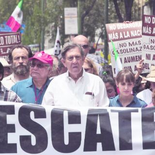 Cuauhtémoc Cárdenas marcha contra privatización de Pemex