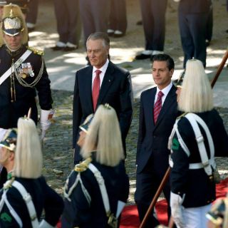 Ambos mandatarios caminaron sobre la alfombra roja, en medio de una valla de integrantes de la Guardia de Honor de Portugal integrada por 148 elementos a caballo, cuyo comandante invitó al Presidente mexicano a pasar revista a las tropas.