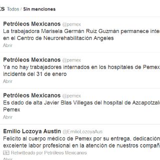 En su cuenta de Twitter, la empresa refiere que sólo la trabajadora Marisela Germán Ruiz Guzmán permanece internada en el Centro de Neurorehabilitación del hospital Ángeles.