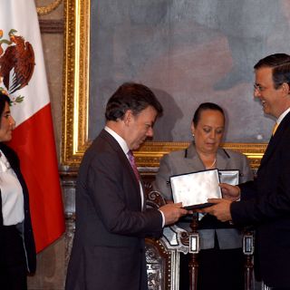 Con la entrega de pergamino y la distinción de ''Huésped Distinguido'', Juan Manuel Santos es el décimo tercer presidente en recibir las llaves de la ciudad por parte del mandatario local, Marcelo Ebrard.