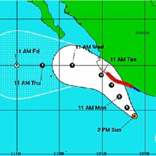 "Se espera que el centro del sistema se aproxime a las costas de Michoacán y Colima, ya como huracán, para la tarde del lunes o la mañana del martes", explicó.