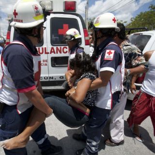 CANCÚN, QUINTANA ROO (12/MAY/2011).- Socorristas brindan atención a una familiar de un interno. Roberto Borge, gobernador de Quintana Roo, solicitó al Gobierno federal el traslado de 148 reos de alta peligrosidad a un penal de máxima seguridad tras el motín registrado ayer en la cárcel de Cancún, el cual dejó un saldo de un reo muerto, tres heridos de bala y cuatro fracturados. La revuelta inició alrededor de las 09:00 horas y fue controlada totalmente a las 11:30 horas.