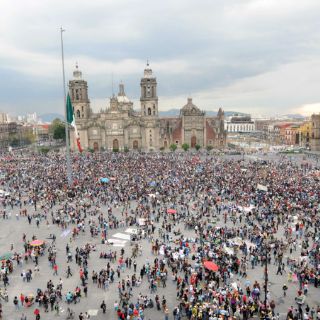 Entre los presentes en el mitin permanecen el dirigente de la CNTE, Rubén Núñez y el líder del SME, Martín Esparza, quien es el último orador.