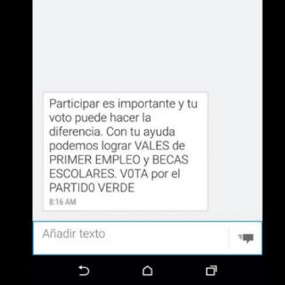 El partido ecologista envía mensajes vía celular, en donde invita a los ciudadanos a votar por su partido