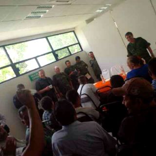 Previamente, en la misma red social, el funcionario publicó una foto en la que el general Patiño explica a los ciudadanos el proceso que realizarán para el desarme: "En la 43 base Zona Militar, el Gral. Patiño explica a ciudadanos el proceso para registro de armas y desmovilización".