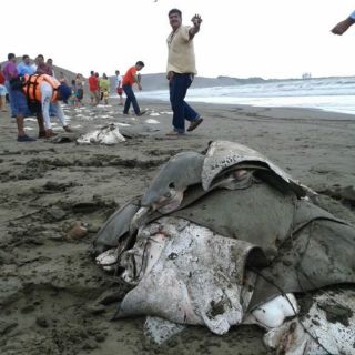De la información levantada en campo, se desprende que los ejemplares de la especie “Rhinoptera bonasus”, comúnmente llamada Tecolote o Gavilán (rayas), playaron el día 16 de julio, aproximadamente entre las 14:00 y 15:00 horas.