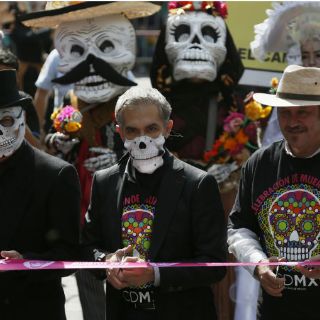 Mancera dio el banderazo de salida con el rostro cubierto por una máscara de calavera.