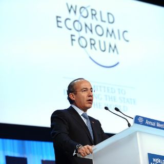 Schwab recordó que, en 1997, Calderón fue elegido como Líder Mundial del Futuro, y resaltó que, en poco tiempo, el gobernante mexicano "se ha convertido en un líder de los tiempos actuales".