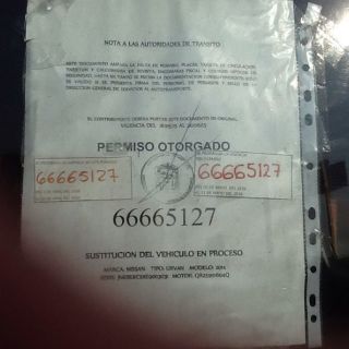 “Este documento ampara la falta de permiso, placas, tarjeta de circulación, tarjetón y calcomanía de revista, engomado fiscal y códigos ópticos de seguridad, hasta en tanto se recaba la documentación correspondiente”, afirma el escrito, que tiene sello del gobierno estatal.