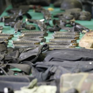 Tras marcarles el alto y someterlos a una revisión de rutina, encontraron entre sus pertenencias ocho fusiles AR-15, con ocho cargadores y 240 cartuchos útiles al calibre; ocho armas de fuego tipo escuadra, calibre .9 milímetros con ocho cargadores, 120 cartuchos útiles y ocho chalecos antibalas, color negro.
