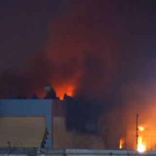 En un edificio contiguo al que se incendia se aprecian sombras moviéndose tras la cortina de una ventana.