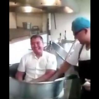 Difunden video de empleado del IMSS 'bañándose' en olla de cocina