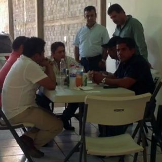 Los presentes en la reunión hablan de "apoyos" y todos ríen. A Servando Gómez se le ve comiendo y bromeando.