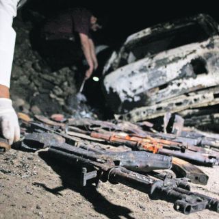 En el lugar se localizaron dos inmuebles, donde se aseguró diverso armamento y vehículos.