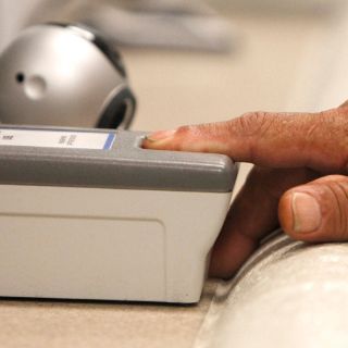 Las personas ingresan por una puerta y frente a una ventanilla computarizada, siguen los pasos de identificación sometiendo sus documentos migratorios a lectores de barras y sus dedos a escáneres de huellas dactilares.