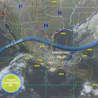Señaló que los efectos del frente frío también ocasionarán evento de Norte de hasta 60 kilómetros por hora en costas de Veracruz y Tabasco, y de hasta 80 kilómetros por hora sobre el Istmo y Golfo de Tehuantepec,