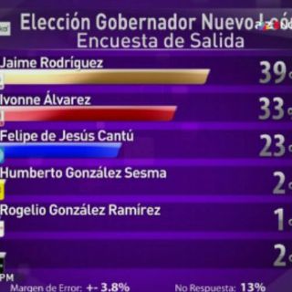 El resultado de candidatos para la gubernatura de Nuevo León, coloca al candidato independiente Jaime Rodríguez ''El Bronco'', a la cabeza con un 39% de las preferencias.