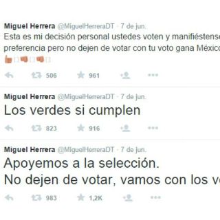Entre quienes enviaron mensajes de promoción del Partido Verde, los legisladores señalan al director técnico de la Selección nacional de futbol, Miguel Herrera, conocido como "El Piojo"; Inés Sainz, Aleks Syntek, Julio César Chávez, Jan Cárdenas y Gloria Trevi, entre otros.
