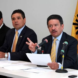 En la rueda de prensa celebrada en la nueva sede del Senado también estuvieron los senadores Silvano Aureoles, Tomás Torres, René Arce y Carlos Sotelo García.