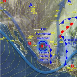 La tormenta invernal 11 y el frente frío 4, así como el sistema frontal 46 ocasionarán lluvias en los próximos días