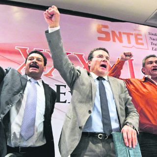 Respaldo. El nuevo secretario general del SNTE, Juan Díaz de la Torre (centro), reiteró su lealtad a Elba Esther Gordillo.
