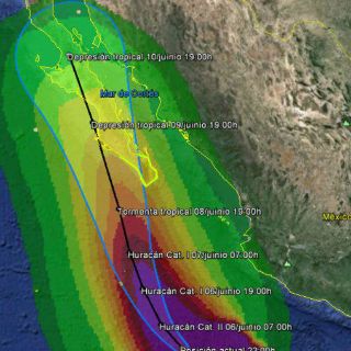 El SMN mantiene una zona de vigilancia por vientos de tormenta desde La Paz, en la costa este de Baja California Sur, hasta Santa Fe, en la costa oeste, incluyendo a Cabo San Lucas.