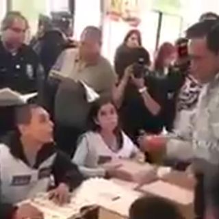 Seguido por numerosos periodistas, Luis Enrique Medina Nava asistió a su casilla y pasó a la mesa a que le revisaran su credencial. Los funcionarios lo atendieron y le regresaron la credencial en una escena grabada y transmitida.