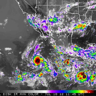 FLORIDA, ESTADOS UNIDOS (10/JUL/2012).- ''Emilia'' asciende a huracán de categoría cuatro en el océano Pacífico frente a las costas de México en el Pacífico, pero sigue sin representar amenaza para las poblaciones del litoral.