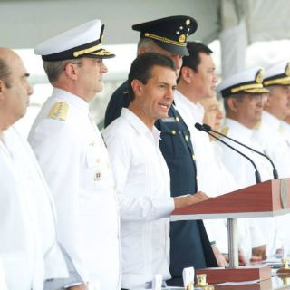 Acompañado por los secretarios de Marina-Armada de México, almirante Francisco Vidal Soberón, y de la Defensa Nacional, general Salvador Cienfuegos, el mandatario manifestó su reconocimiento a las Fuerzas Armadas del país.