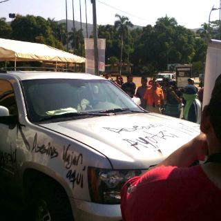 La camioneta de Luis Walton Aburto es interceptada y grafiteada