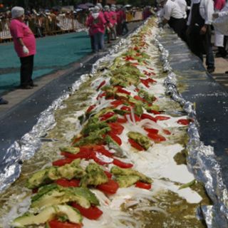 CIUDAD DE MÉXICO (18/OCT/2010).- Iztapalapa consiguió este domingo establecer el récord Guinness por la elaboración de la enchilada más grande del mundo, la cual midió 70 metros de longitud y tuvo una tonelada con 416 kilogramos de peso.