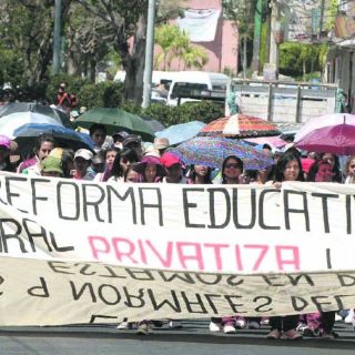 La dirigencia sindical no estuvo en el Palacio Nacional, sino en las calles. Con manifestaciones, marchas y plantones, unas 40 organizaciones se manifestaron en Michoacán y Guerrero contra de la reforma.